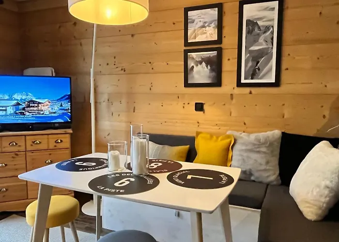 Az 1 szobás Le 41 Du Lyret - Appartement Type Studio Pour Deux Avec Vue Sur Les Aiguilles Dans Chamonix Centre területétől hozzávetőlegesen 2 km-re található Mont Blanc-alagút valami gyönyörű felfedezésének az izgalmát kínálja, továbbá a szállás borbélyüzletet foglal magába. A 27 m²-es apartmanban van egy terasz, kilátással a hegyre.